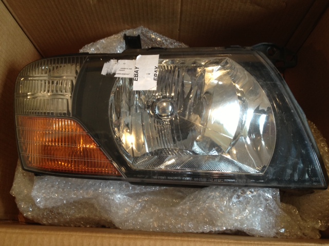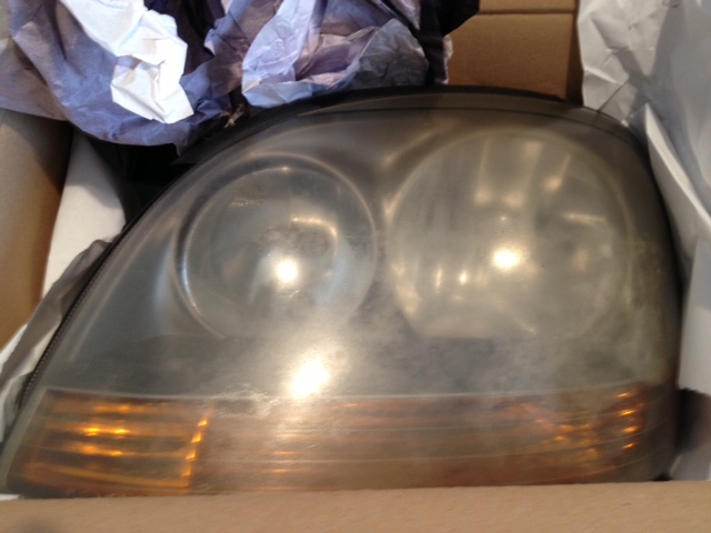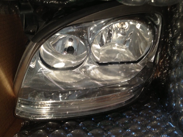 Посылка пришла в плохом состоянии, две коробки смотаны в месте, в одной лежала фара на PREMACY в поздней версии, у нее нижнее боковое крепление ближе к поворотной части в щепки разломалось.